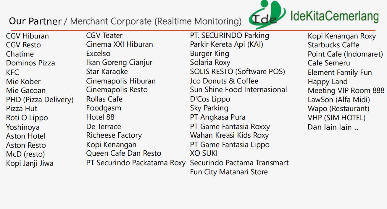 Produk kami adalah sebuah sistem rekam data transaksi yang inovatif dan dirancang khusus untuk memenuhi kebutuhan Badan Pendapatan Daerah. Sistem ini bertujuan untuk mengawasi dan mengelola data transaksi dari sektor restoran, cafe, foodcourt, hiburan, parkir, dan hotel. Dengan fokus pada keakuratan dan keterbukaan, produk ini menjadi solusi terdepan dalam memastikan perekaman data transaksi yang efisien dan terpercaya..
